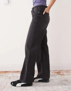 Monki Imoo Low Waist Wide Leg Jeans In Washed Black For Women