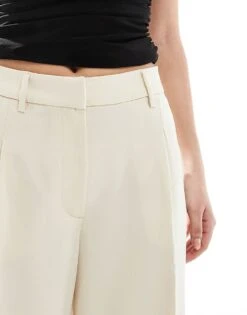 Monki High Waist Wide Leg Tailored Trousers In Light Grey For Women