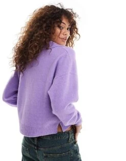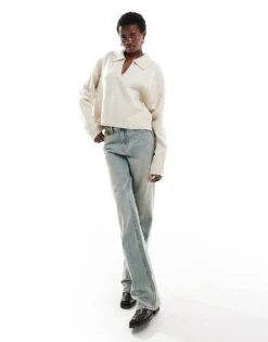 Monki Knitted Pattern Cardigan With Collar And Puff Sleeves In Off White For Women